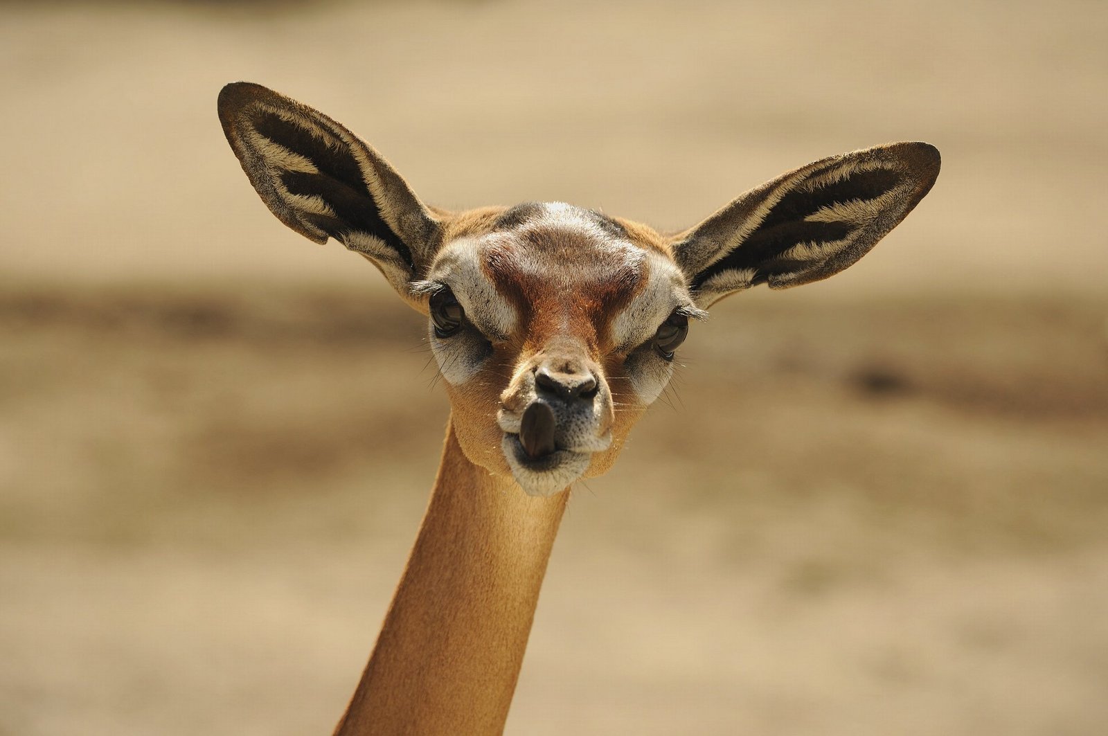 Die Giraffengazelle fällt durch ihren langen Hals sofort auf. Der Körperbau ist aber nicht das einzige Spezielle an ihr, auch die Verhaltensweise ist interessant. Trotz langem Hals, stellt sich das Gerenuk zur Nahrungsaufnahme auf die Hinterbeine.